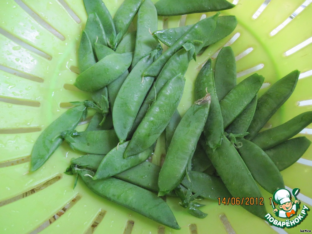 Горошек промыть, удалить жесткие боковые волокна и хвостики.