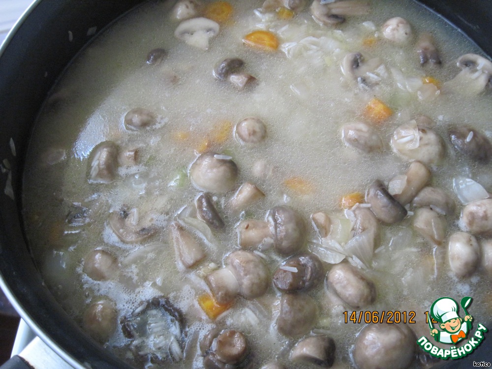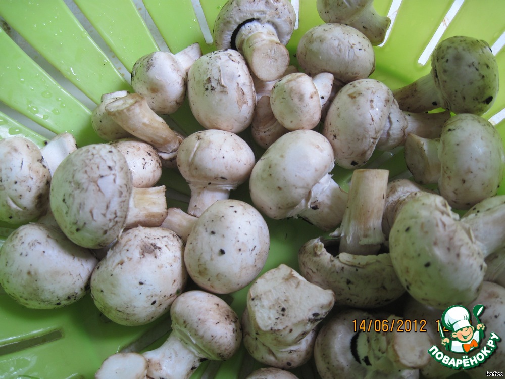 Грибы промыть, если крупные - режем пополам, а мелкие можно целиком.