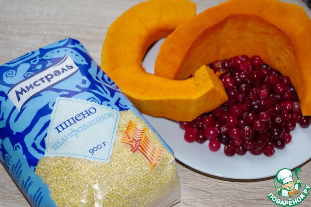 Для запеканки нам понадобятся главные составляющие: пшено, тыква, клюква.