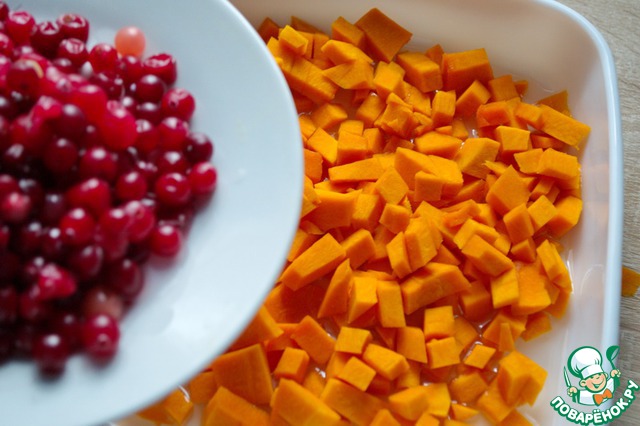 Сверху на тыкву выкладываем хорошо промытую клюкву.