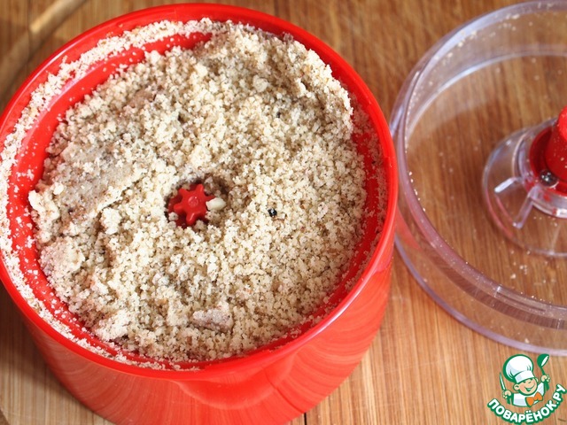 Пока пекутся овощи приготовим соус баже. Для этого измельчим в блендере грецкие орехи.