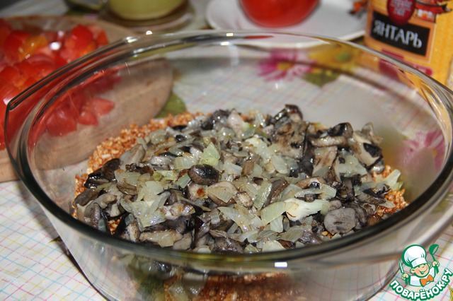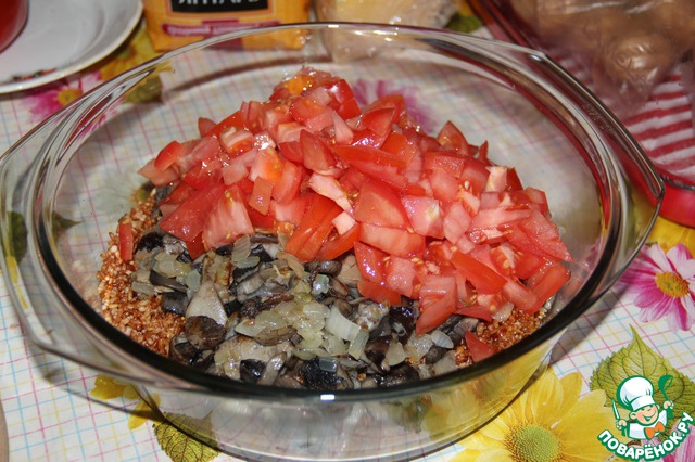Перемешать и поставить в духовку минут на 18-20 как начнет закипать при 200*С.