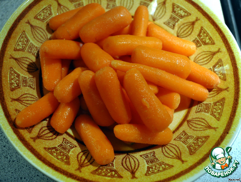 Берем морковь, маленькую, и очищаем, или режем большую на кусочки