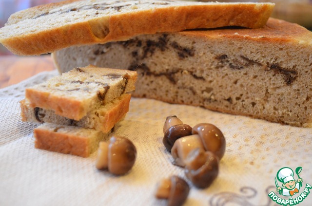 И можно подавать к столу. Мягкий, теплый, серый хлебушек с ароматом грибов-просто находка для моей семьи.