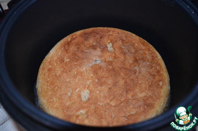 Ставим форму в мультиварку, включаем режим "Выпечка" на 50 мин. Через 40 мин. (у моей мультиварки Vitek VT-4210ВК минимальный шаг при выпечке-50 мин.) хлеб осторожно достаем, переворачиваем и кладем неподжаренной стороной вниз. Включаем программу "Выпечка" еще на 20-25 мин.