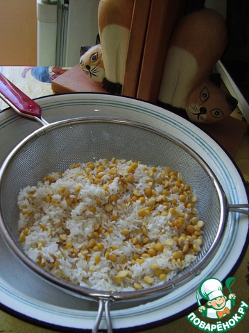 Уже на первом шаге становится известно, почему не "Кичри", а "По мотивам..." В оригинальном рецепте используется горох мунг-дал (известный у нас как "маш").