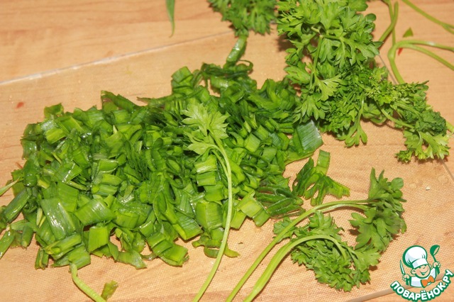 В конце приготовления добавить нарезанную зелень - лук и петрушку