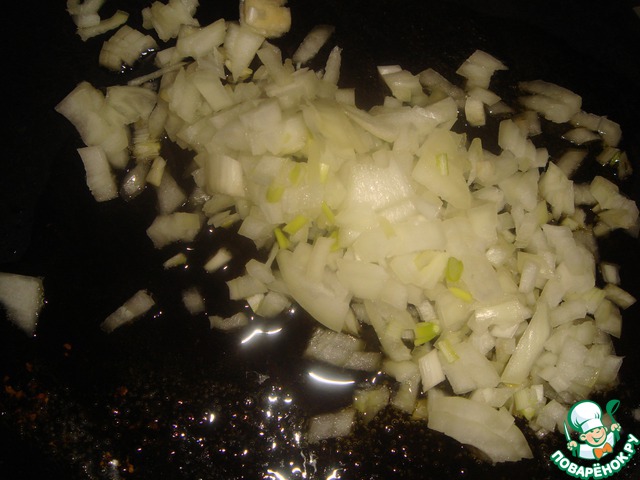 В сковороду налить оливковое масло, обжарить немного лук