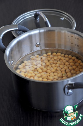 Нут замочить в большом количестве холодной воды на ночь.