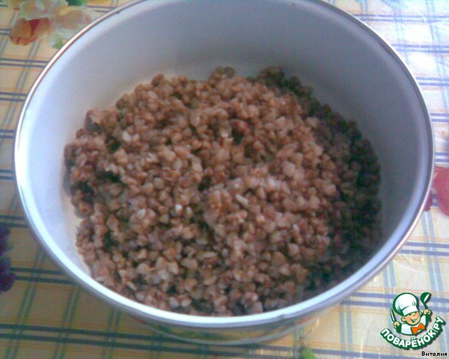 Гречку залить водой, посолить и сварить до готовности.