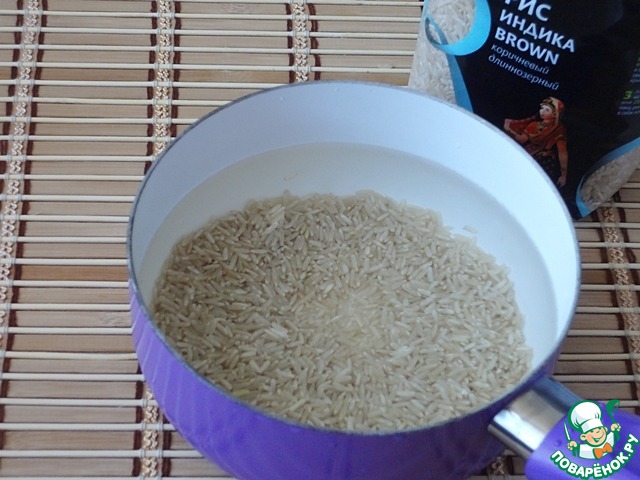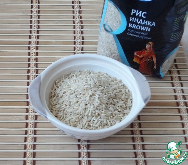 Отмерьте рис. Я использовала коричневый длиннозерный рис «Индика Brown» ТМ Мистраль. Индика Brown от Мистраль - это рис Индика, подвергнутый бережной шлифовке, которая сохраняет отрубевую оболочку и зародыш зерна. Вкусно и полезно!