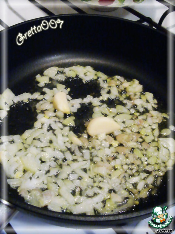 Лук мелко нарежем и спассеруем на сковороде до мягкости в смеси 1 столовой ложки сливочного и 1 столовой ложки оливкового масел.