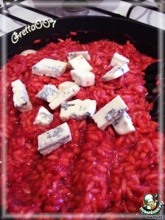 [i]Я использую вареную или печеную свеклу по нескольким причинам: во-первых, в Италии, как говорят, сырую свеклу очень трудно найти в продаже, во-вторых, так получается ароматнее, в-третьих, просто не люблю измельчать сырой корнеплод на терке, а хочется, чтобы свекла "растворилась" в ризотто, придав ему цвет и вкус. Если вы хотите использовать сырую свеклу, положите её перед тем, как засыпать рис.[/i]