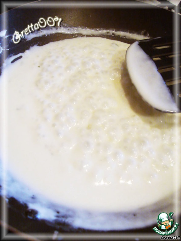 В сковороде растопим 1 столовую ложку сливочного масла, добавим сливки или молоко, доведем до кипения.