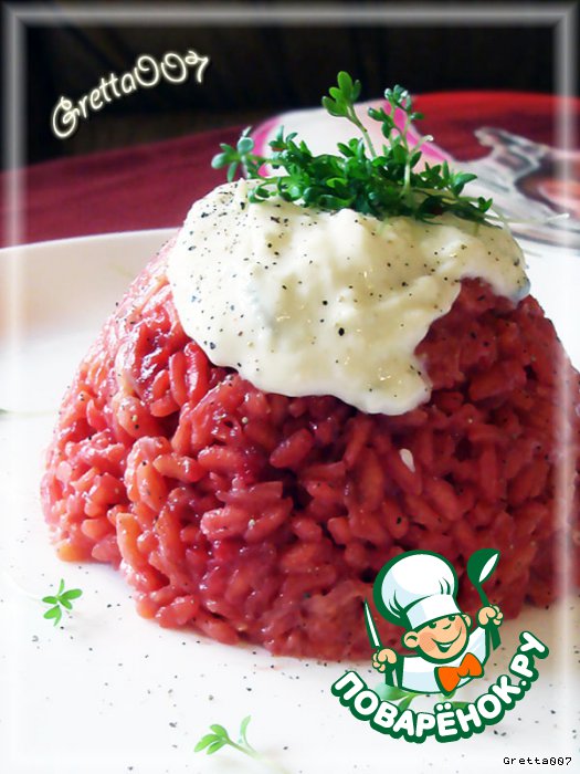 P.S. У этого рецепта существует несколько вариаций. Отличие состоит в том, что в ризотто вместо горгонзолы добавляется пармезан, блюдо при этом подается не с соусом, а с творожным сыром или зерненым творогом, или же, совсем по-русски, со сметаной. Так что не только русские любят итальянскую кухню, но и итальянцам иногда нравится мягкий привкус борща.
