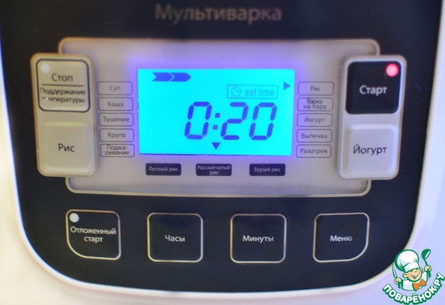 Я насыпаю промытый рис в мультиварку, добавляю нужное количество воды и включаю программу Рис-Рассыпчатый рис на 15-20 минут.