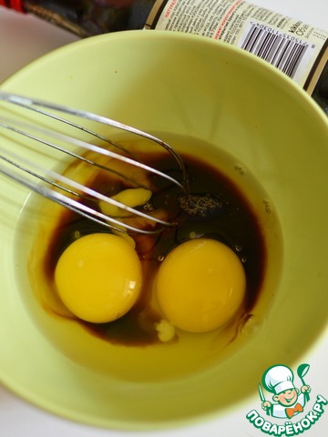 Яйца смешайте с соевым соусом.