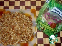 У меня много грильяжа осталось от предыдущего десерта, его я и использовала. На всякий случай, расскажу, как его делала. Орехи (у меня грецкие, но можно любые) слегка обжарить, выложить на силиконовый коврик или пергамент, смазанный маслом растительным. Сахар (лучше коричневый) расплавить на сковороде до состояния карамели, вылить на орехи. Когда карамель застынет, перемолоть массу в блендере.