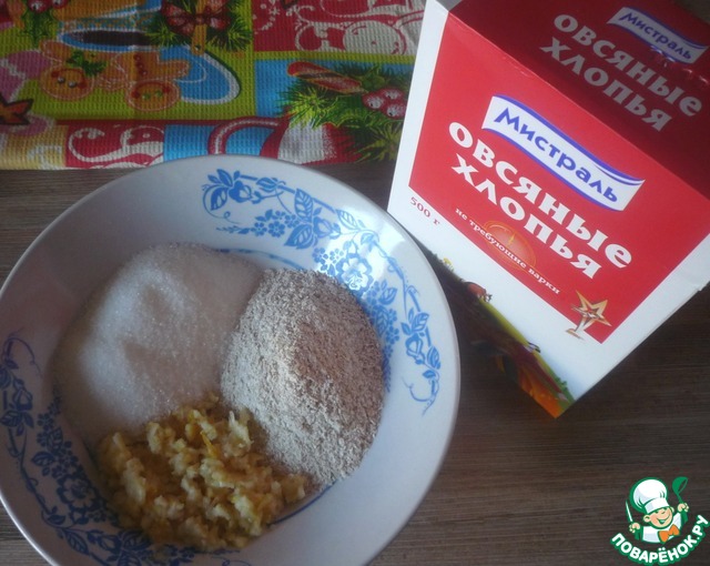 Соединить хлопья, лимон, масло растительное, сахар, соду, муку. Замесить тесто.