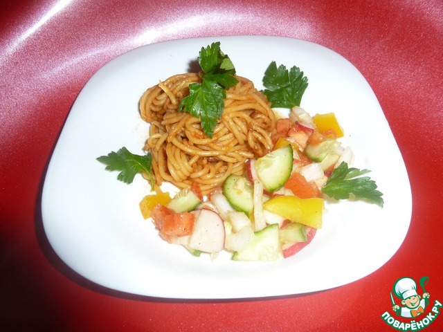 Отвариваем спагетти минут 5-7, слегка не доварив
