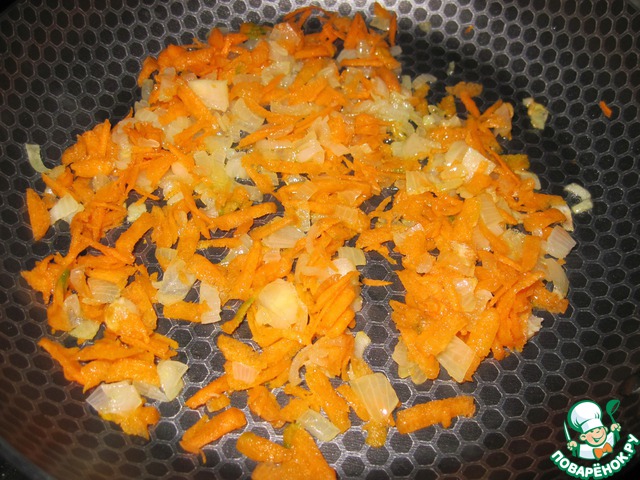 Мелко нарезанный лук и тертую на крупной терке морковь спассеровать на растительном масле.