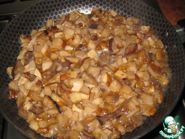 Соединить пассерованные овощи, грибы и ячневую кашу, добавить соль и перец по вкусу.