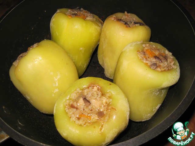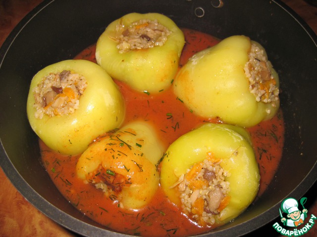 | Начинка из ароматных белых грибов и очень полезной ячневой каши - еще один вариант для фарширования сладкого перца. Блюдо получается сытным, сочным и очень вкусным. |