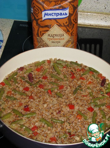 Когда гречка распарится и впитает всю воду наше блюдо - готово! Но лучше выключить плиту и оставить его настояться минут 10 под крышкой.