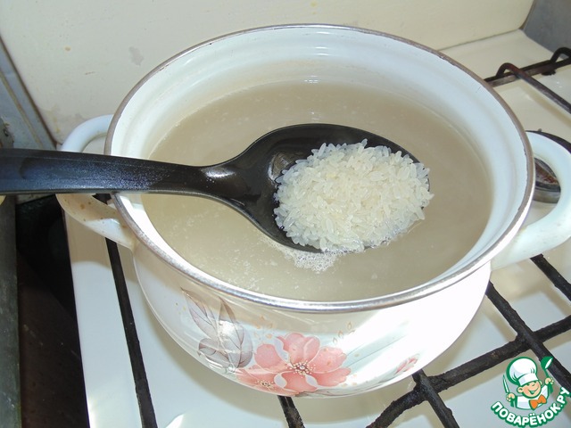 Рис хорошенько промыть и поставить варить, немного посолить.