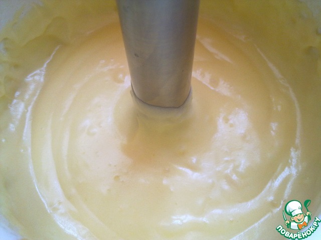 Как картофель будет готов, слить воду, добавить сливочное масло, мелко натёртый сыр и 3 желтка. Всё тщательно взбиваем при помощи блендера.