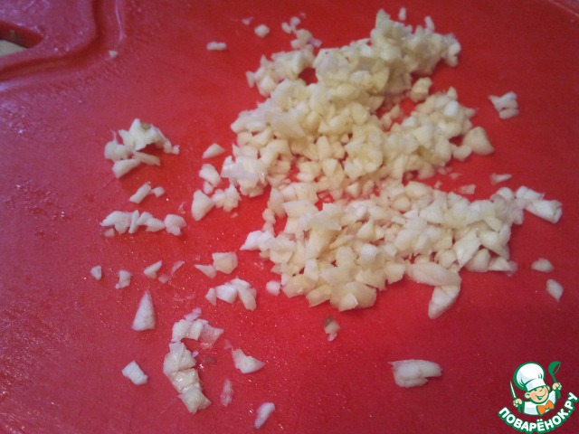 По рецепту предлагалось очистить перец от семян, но я их оставила. Так острее. Перец мелко режем. Лучше это делать в перчатках, которые потом выбросить. Если режете его "невооруженными" руками, то прежде, чем мыть руки необходимо их предварительно смазать растительным маслом. Осторое вещество в перце не растворяется в воде, но хорошо растворяется в жирах и алкоголе.