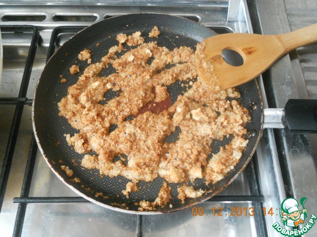 В сковороде разогреть масло, добавить кокосовую стружку, орехи кешью. Растолочь кардамон, добавить в смесь и тушить 3 мин.