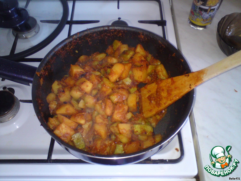 Заливаем соусом овощи и жарим еще 5 минут.