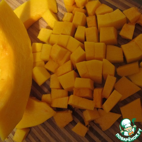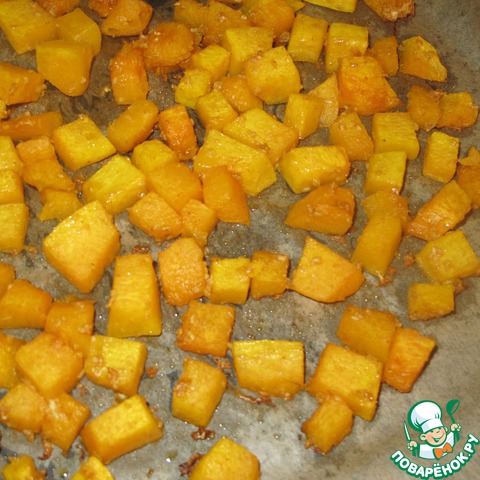 Тыкву перемешать с раздавленным чесноком, оливковым маслом, солью и жгучим острым перцем.