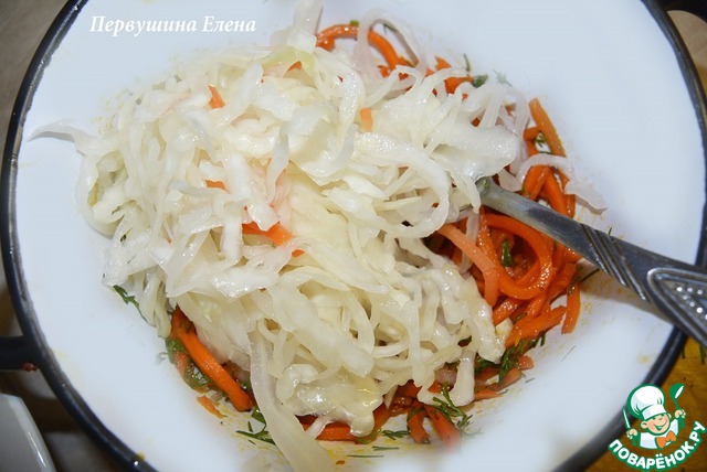 Соединить с квашенной капусткой. Перемешать.