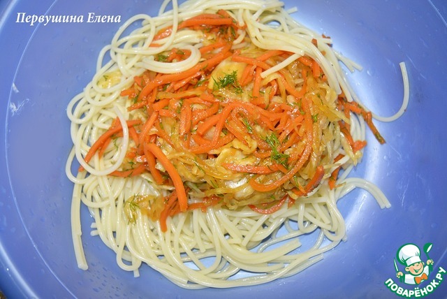 Смешать со спагетти.