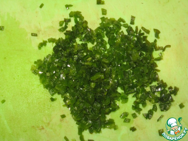 Перец мелко режем. В оригинальном рецепте еще добавляется мелко нарезанная свежая мята или кинза, но в нашем крупном портовом городе эти травки в апреле не найти ( ( (