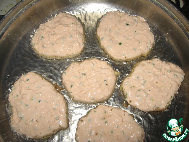 В сковороду с разогретым маслом выкладываем тесто небольшими лепешками и обжариваем с двух сторон.
