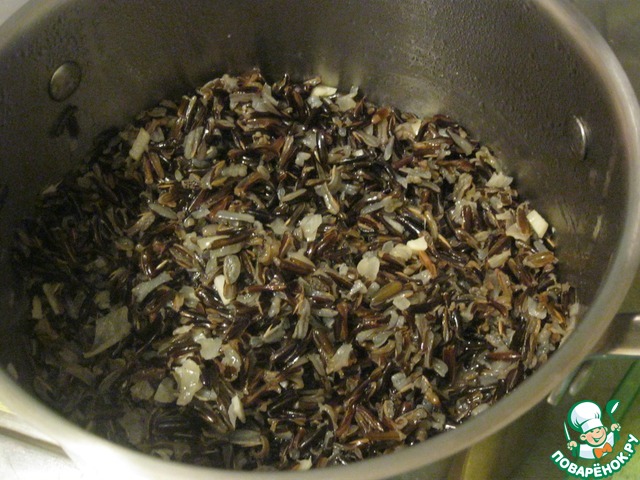 Рис необходимо залить водой в соотношении 1:3 и отварить в течение 35 минут (до полуготовности).