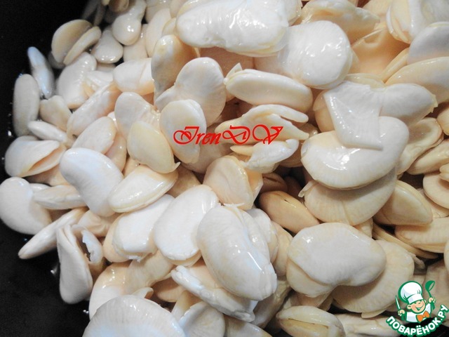 Фасоль замачиваем в холодной воде на несколько часов. У меня уже через два часа она вся раскрылась.
