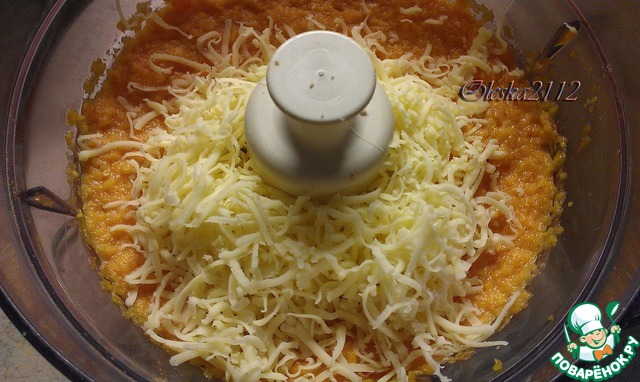 Затем добавляем к морковно-яичной смеси тёртый сыр.