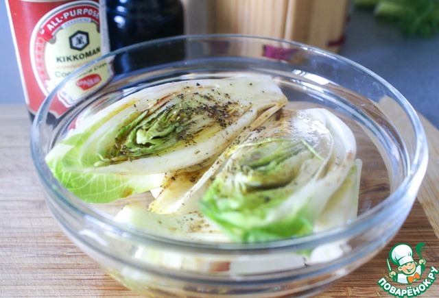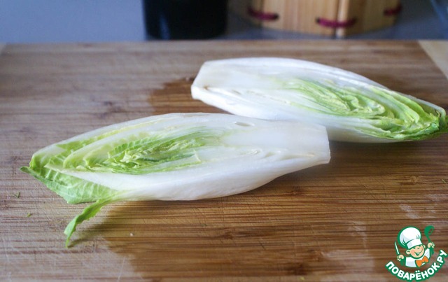 Подготовить продукты. Цикорий хорошо промыть в холодной воде, обсушить.