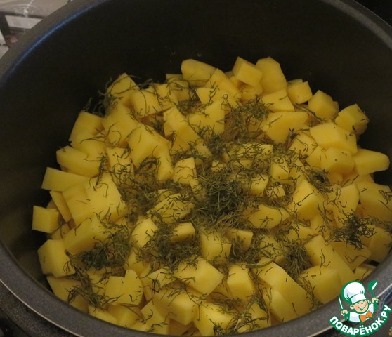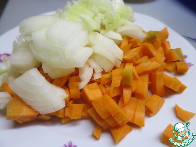 Картофель и корневой сельдерей почистить, нарезать кубиками.