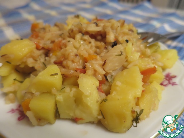 | Рис, приготовленный совместно с картофелем и корнем сельдерея, впитал в себя новые вкусы. Для меня этот злак уже долгое время остаётся одной из основ для кулинарного творчества. И очередной раз вкус блюда с ним стал неповторимым... Если у вас нет мультиварки, то этот рецепт и набор продуктов можно адаптировать под приготовление на плите (или для запекания в духовом шкафу). |