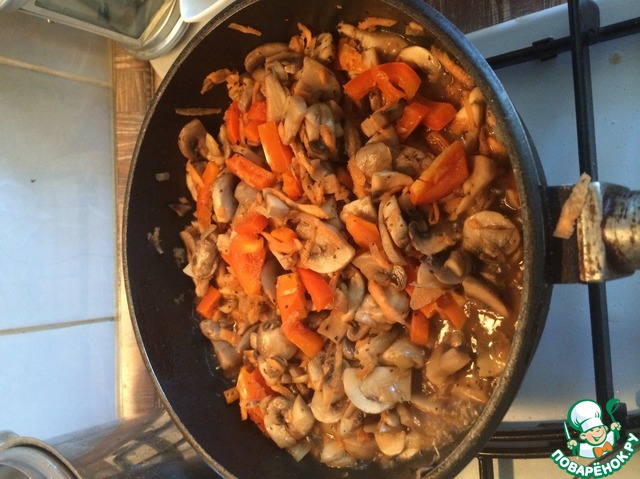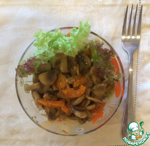 | Тушеные шампиньоны с луком, чесноком и сладким перцем. Совсем не эксклюзивное блюдо, но такого я не нашла на сайте. Готовится быстро и легко. Можно подавать с гарниром или как отдельное блюдо, если добавить больше овощей. Для меня- это спасенье, когда нужно сделать все быстро и красиво. |