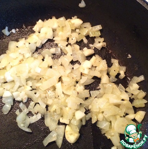 Лук, чеснок режем мелкими кубиками и на растительном масле пассируем пару минут