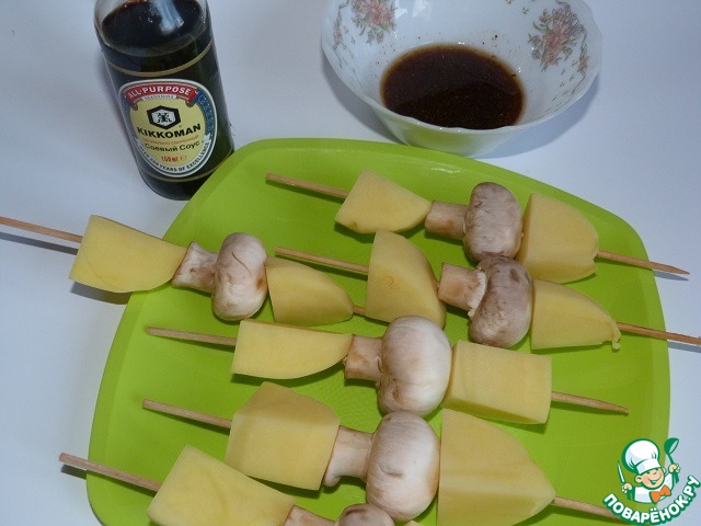 "Шашлычки" из картофеля с шампиньонами (в аэрогриле)