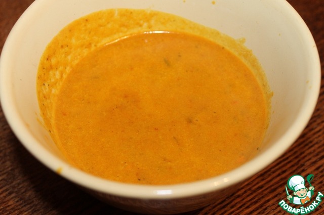 Для соуса карри: соединить куркуму, порошок карри, порошок чили, молотый тмин и кориандр, добавить воды, чтобы получилась густая паста. Нагреть масло для соуса, затем добавить чеснок и имбирь. Через минуту добавить пряную пасту и готовить еще 5 мин, пока масло не начнет отслаиваться. Добавить томатную пасту и кокосовое молоко, готовить 5-7 минут на медленном огне. Отставить.