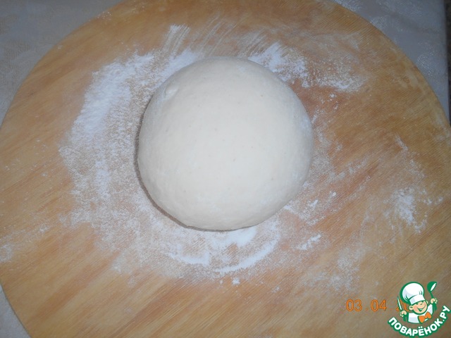 Для начала замесим дрожжевое тесто из муки, соли, теплой воды и дрожжей, чтобы оно успело подойти. Скатаем в шар, накроем салфеткой и поставим в теплое место.