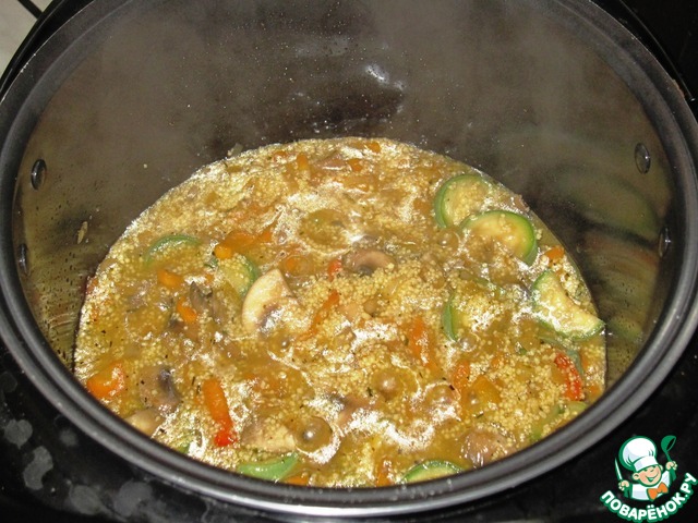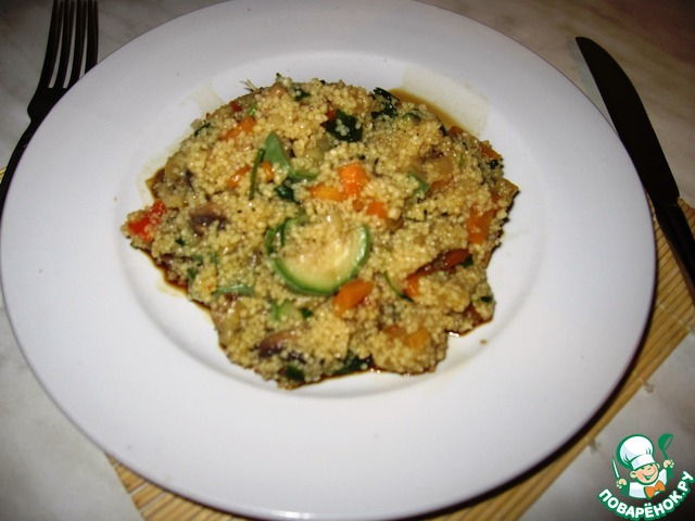| Очень люблю экспериментировать с кус-кусом. Мне кажется, что им не возможно испортить блюдо. Его можно подавать как гарнир, а так же как вполне самостоятельное блюдо в пост... Я готовила это блюдо в мультиварке, но можно использовать и глубокий сотейник) |